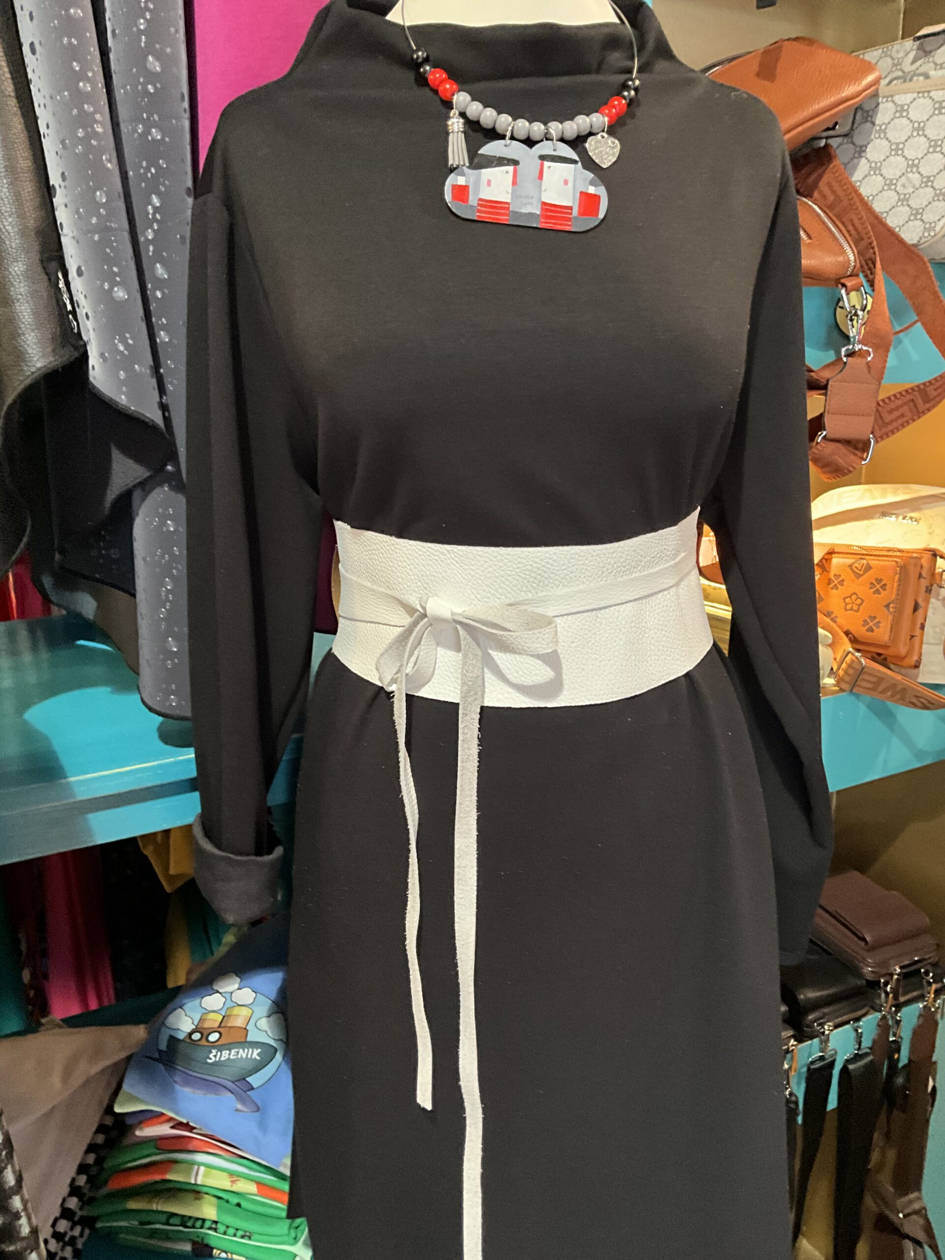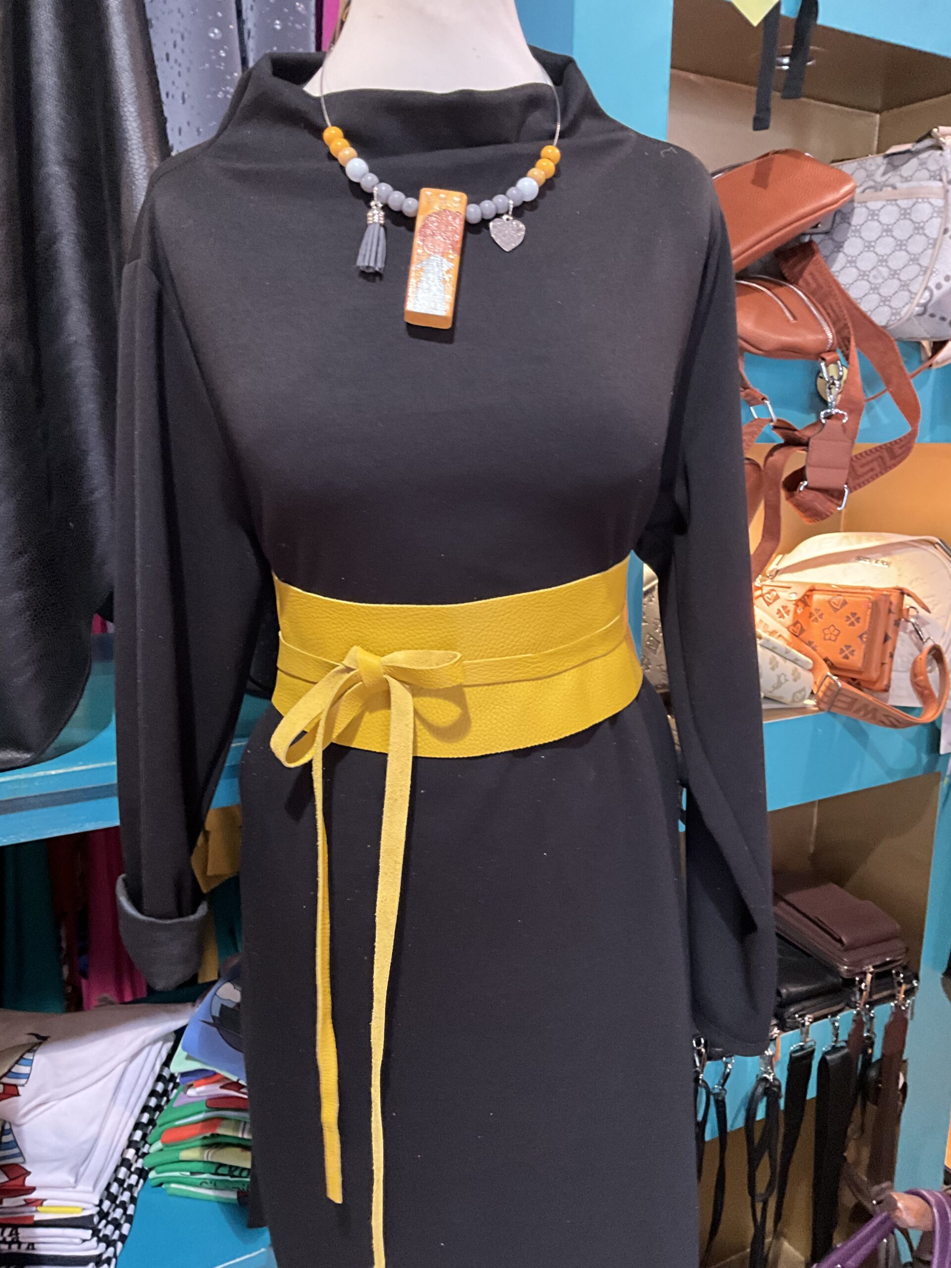 It can be worn over a t-shirt, tunic, dress, sweater, coat, jacket…